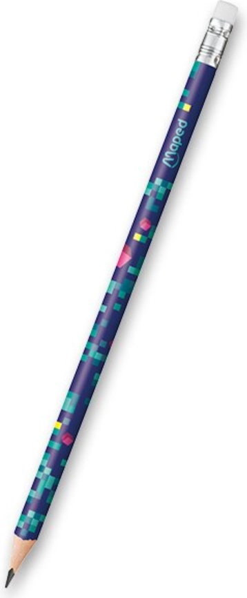 Elegante lápiz de grafito sin madera MAPED Pixel Party con goma, en paquete de 6 uds, destaca por su atractivo diseño pixelado. Ofrece forma ergonómica triangular para escribir con comodidad, mina HB de alta calidad y fácil sacapuntas. Fabricado con materiales reciclados para una opción más sostenible para la escuela y la oficina.