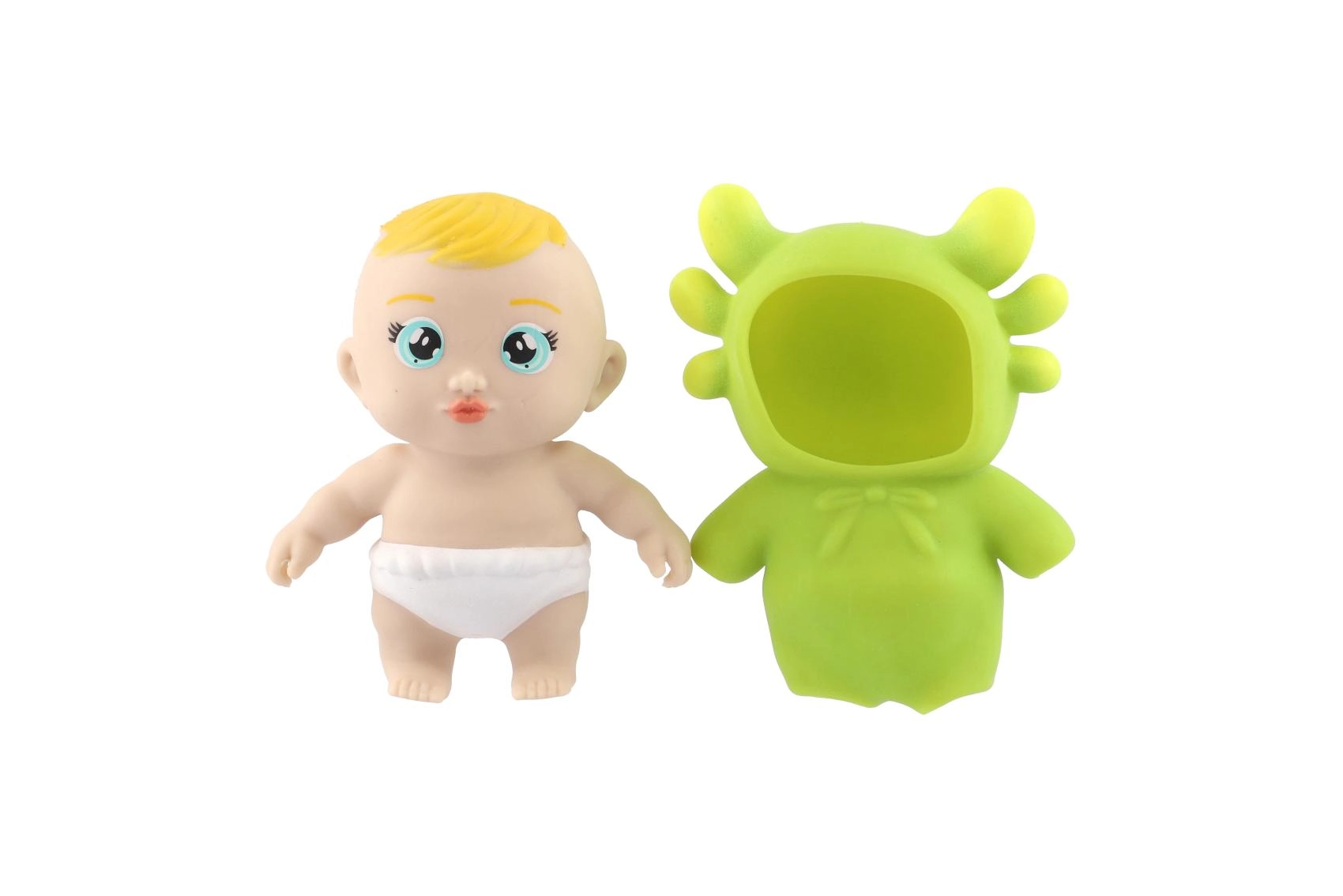 Este juguete antiestrés para apretar, con forma de bebé en un disfraz de animal, ofrece una experiencia táctil relajante y, al mismo tiempo, mucha diversión. La silicona flexible se siente bien en la mano, resiste los apretones frecuentes y siempre recupera su forma original.
