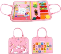 Descubre la magia de aprender jugando con el libro sensorial busy con motivo de unicornio, que ofrece a los niños diversión y desarrollo de la motricidad fina. El libro incluye botones, hebillas, cremalleras, velcros y cordones, y potencia el pensamiento lógico, la concentración y la percepción sensorial. Es suave, ligero y perfecto como regalo para niños a partir de 3 años.