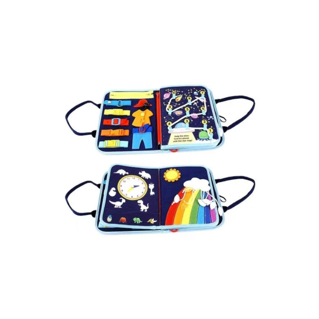 Descubre un juguete divertido y educativo para niños: un libro sensorial interactivo con temática espacial de 2Kids Toys. Favorece la motricidad fina, el pensamiento lógico, la concentración y la percepción sensorial. Gracias a actividades como botones, hebillas, cremalleras, velcro y cordones, los niños entrenan la destreza y la autonomía. El libro es blando y ligero, ideal para viajes y para casa, y perfecto como regalo para niños a partir de 3 años.