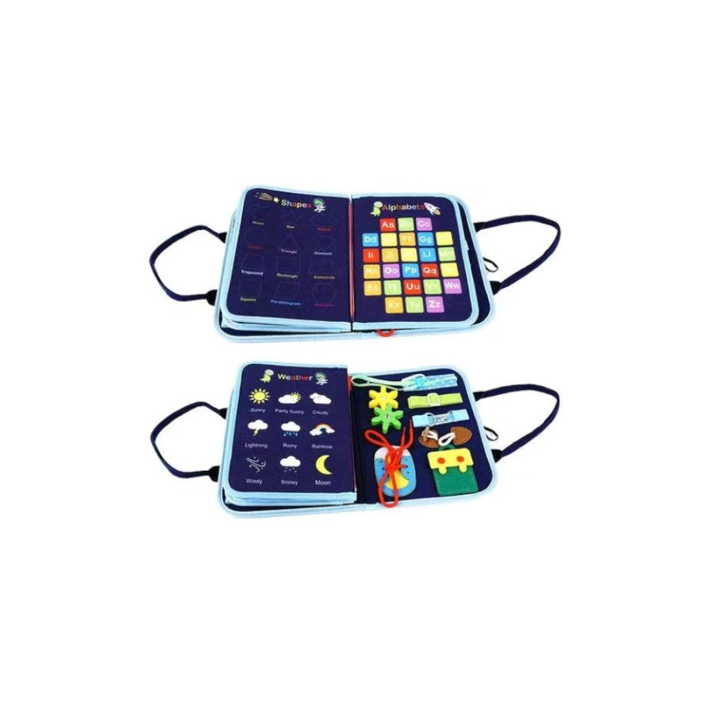 En su interior encontrarás actividades como botones, hebillas, cremalleras, tiras de velcro y cordones, que ayudan a practicar habilidades prácticas y de autocuidado. Gracias a su diseño blando, el libro es seguro, ligero y adecuado también para viajar.