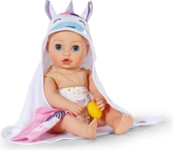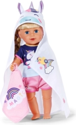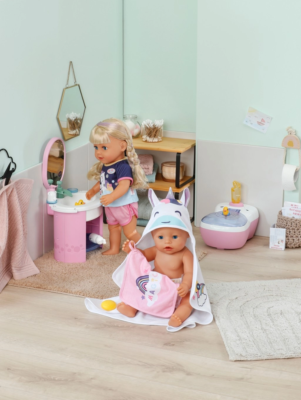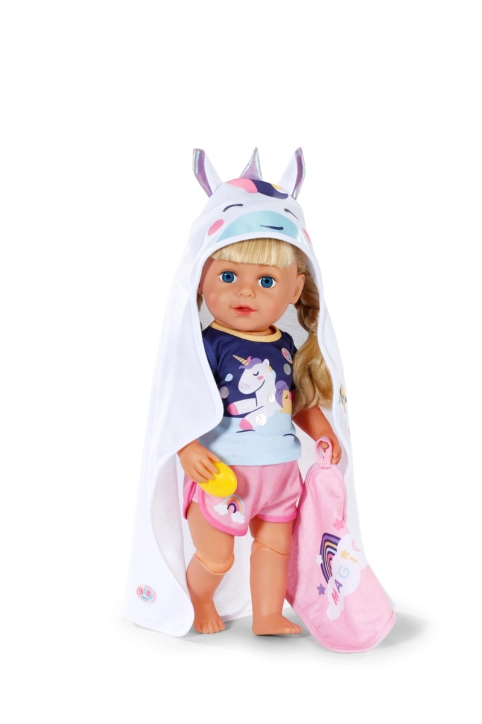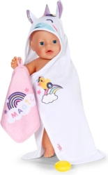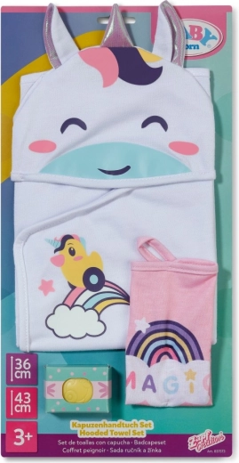 Brinda a tu muñeca la máxima comodidad después del baño con este adorable set de toallas BABY born. Incluye dos piezas muy suaves con motivo de unicornio y arcoíris, capucha con estampado y orejitas. Ideal para muñecas de 36 cm y 43 cm. Material suave, encantador motivo de unicornio y capucha práctica para un secado y juego con estilo.