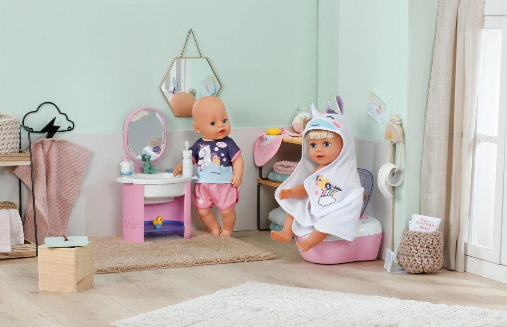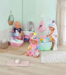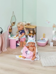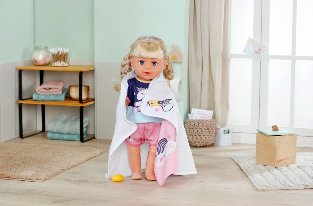 Las toallas están hechas de un material suave y agradable, delicado con las manos infantiles y con las muñecas favoritas. El set es compatible con muñecas de 36 cm y 43 cm, por lo que complementará de maravilla tus accesorios para el juego diario.
