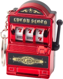 Versión mini de la clásica máquina tragaperras en forma de práctico llavero. ¡Este gadget original tiene una palanca móvil que hace girar los rodillos con símbolos y, gracias a sus dimensiones compactas de 6 × 4 × 2,5 cm, puedes llevarlo a cualquier parte. Un accesorio divertido y un regalo original para los fans del ambiente de casino.