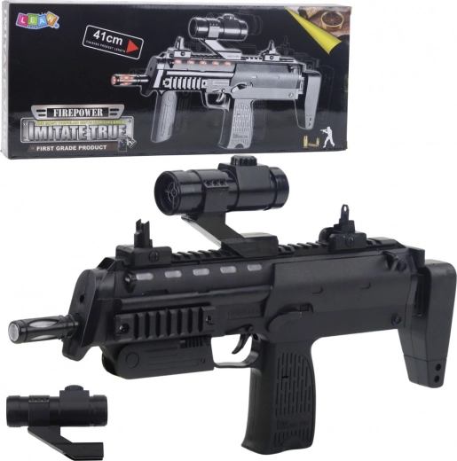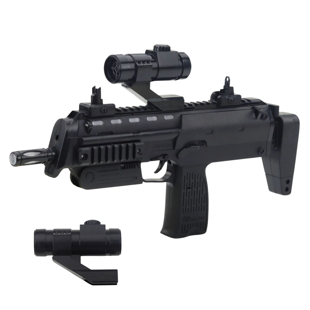 Un subfusil de juguete para niños, diseñado con realismo, encantará a los pequeños fans de los juegos de acción. Gracias a sus efectos de luz y sonido y a la mira incluida, el juego es aún más divertido. Su resistente construcción de plástico garantiza un uso seguro y una larga vida útil, ideal como regalo para niños que aman la diversión dinámica.