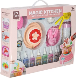 Cocina Mágica es un set creativo interactivo inspirado en el hotpot asiático. Coloca en la olla con una solución acuosa especial los moldes llenos de gel y, en pocos segundos, se formarán originales figuras 3D. Gracias a los 12 tonos de gel puedes mezclar los colores libremente y crear tus propias combinaciones.