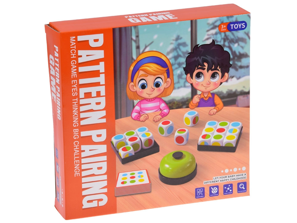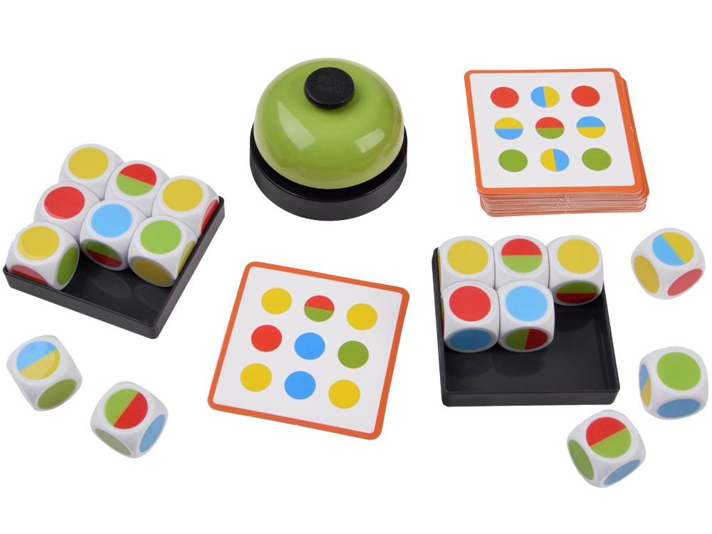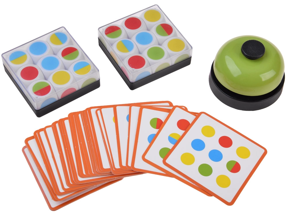 Un juego familiar divertido y rápido donde deciden el reflejo, la concentración y el pensamiento rápido. La tarea de los jugadores es recrear lo más rápido posible el patrón de colores de la carta y pulsar el timbre antes que el rival. Una excelente opción para entrenar la coordinación ojo–mano y para competencias emocionantes llenas de risas.