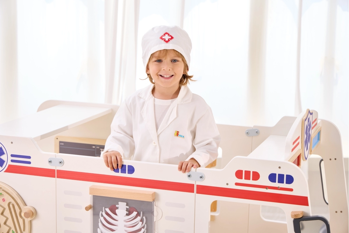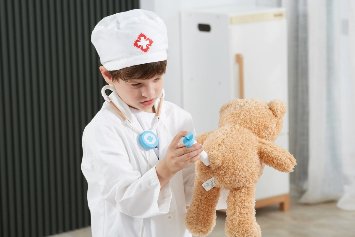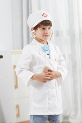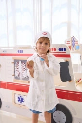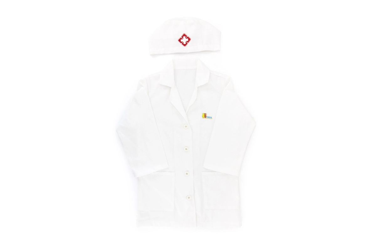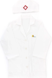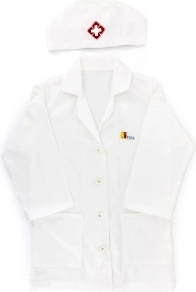 La bata blanca y el gorro con símbolo médico estimulan la imaginación infantil y aportan un toque realista al juego.