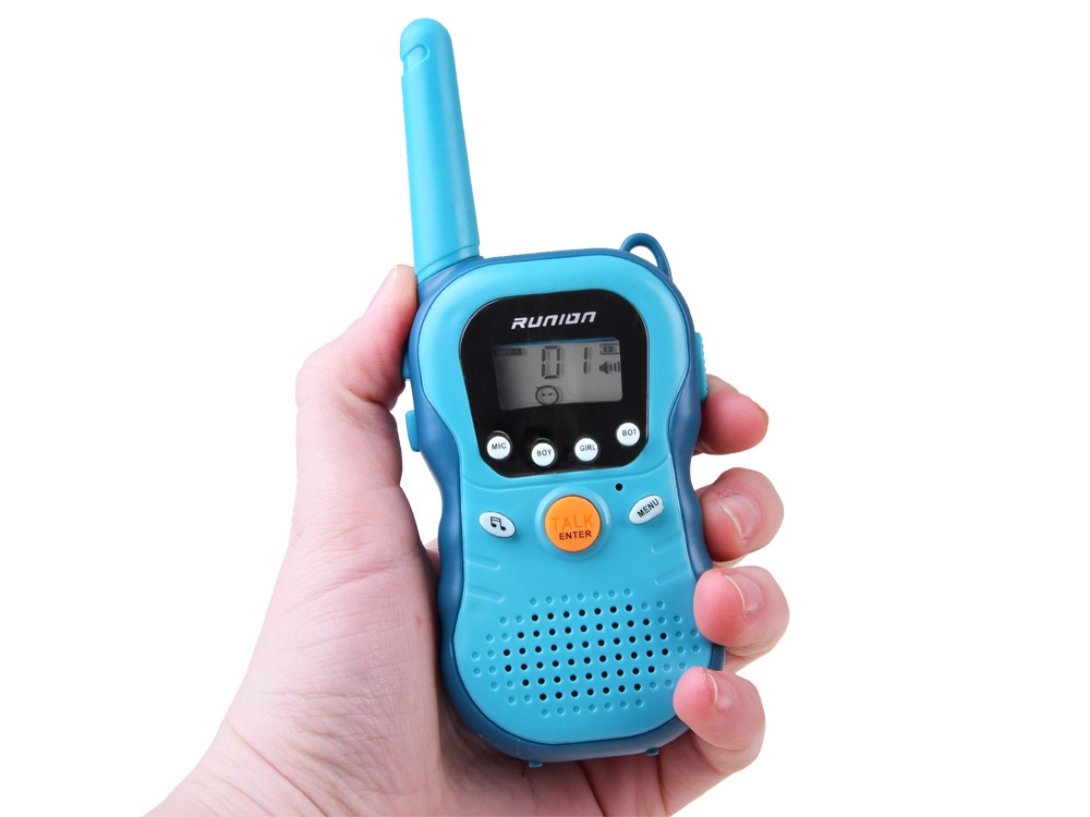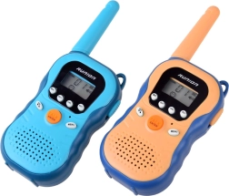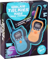 Divertido set de dos walkie talkies para niños para jugar tanto al aire libre como en casa, con un alcance de hasta 3 km en espacios abiertos. Manejo sencillo, 16 frecuencias, control de volumen y cambiador de voz (niño, niña, robot + original) para garantizar mucha acción. Incluye tono de llamada de entrada (4 sonidos), clip para cinturón y orificio para cordón – ideal para el jardín, la playa, el bosque y misiones secretas.