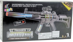 Este rifle infantil está hecho de plástico de alta calidad y resistencia, capaz de soportar un juego intenso y seguro para los niños. La impresionante longitud de 73 cm potencia su aspecto realista y brinda a los niños una sensación de acción auténtica. Al presionar el gatillo se activan los efectos de luz y sonido, que hacen el juego aún más atractivo.