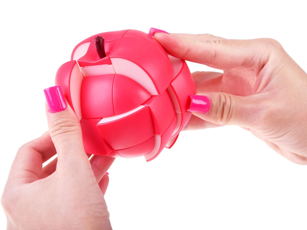 Este rompecabezas de destreza inspirado en la forma de una manzana destaca por su silueta redondeada con la característica “ramita” y una mecánica ingeniosa. En lugar de muchos colores, utiliza un patrón uniforme que cambia la forma de resolverlo y eleva la exigencia del armado. Las capas giratorias y los elementos centrales permiten variadas secuencias de movimientos que deben corregirse con estrategia.