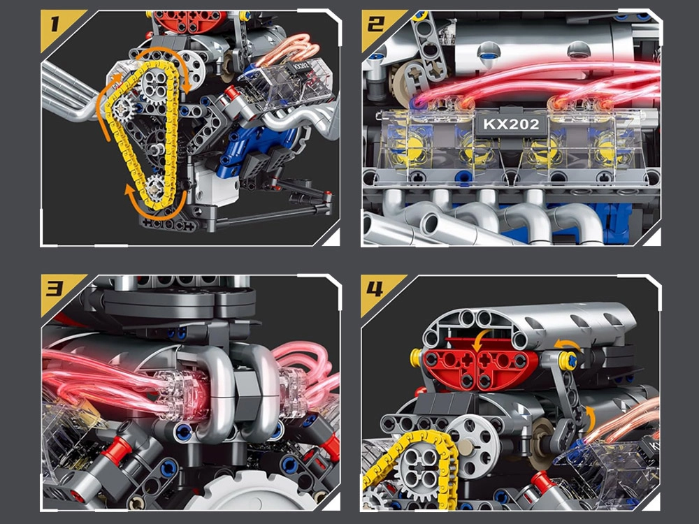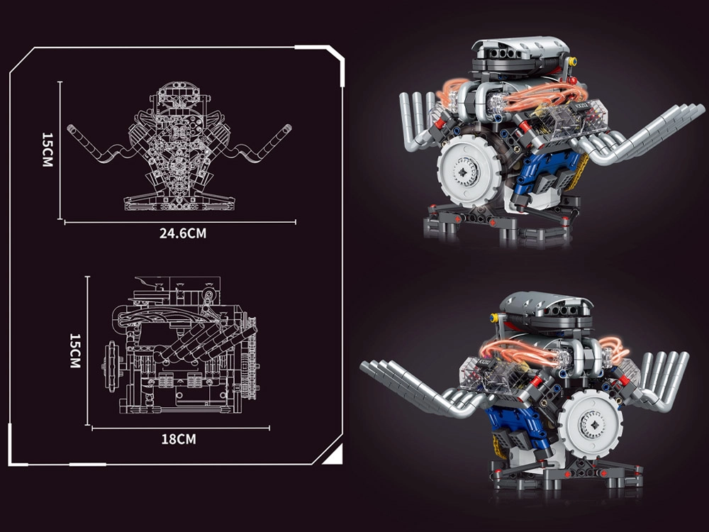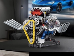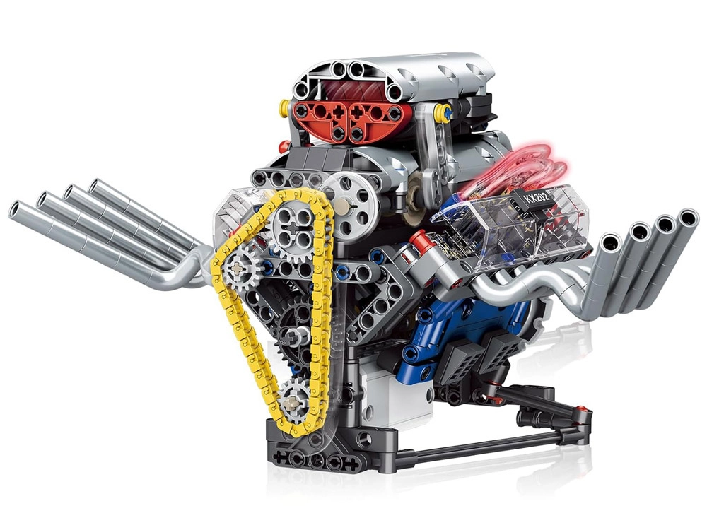Este kit técnico te guía paso a paso en la construcción de un modelo de motor funcional alimentado por batería. Gracias a su diseño bien pensado, verás en la práctica cómo trabajan el pistón, la correa de distribución y el volante de inercia, y cómo se transmite la energía en los mecanismos.
