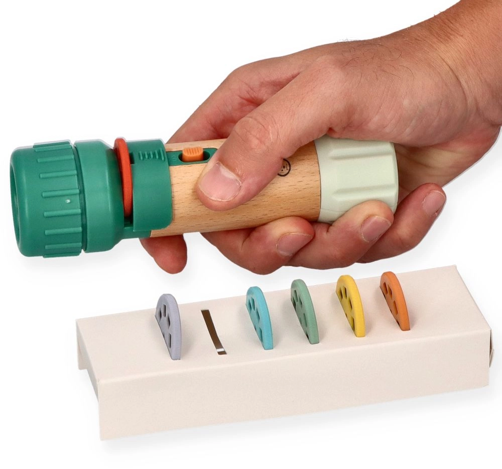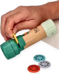 Esta linterna proyectora infantil combina luz y diversión: proyecta imágenes en la pared o el techo y crea una atmósfera mágica antes de dormir. Gracias a sus dimensiones compactas, se sujeta y maneja con facilidad incluso por los usuarios más pequeños.