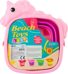 Adorable cubo plegable con forma de unicornio, ideal para la playa, el arenero y el jardín. Gracias a su ingeniosa construcción se pliega fácilmente en plano, por lo que ahorra espacio y es práctico para viajar. Fabricado con silicona y plástico de alta calidad y seguros, con colores intensos que estimulan la imaginación infantil.