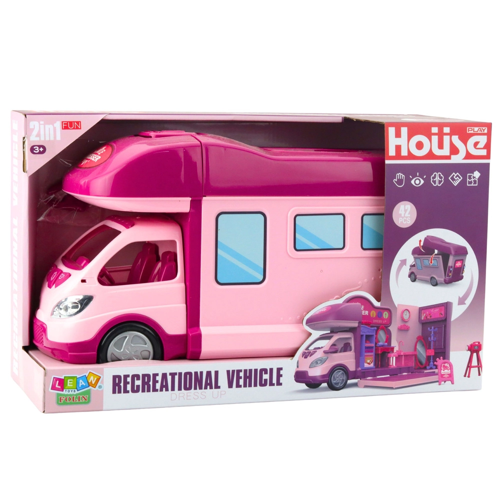 La gran caravana rosa‑lila se convierte, al desplegarse, en una acogedora casa para muñecas que estimula la imaginación y el juego creativo. El amplio surtido de accesorios permite organizar el interior de forma variable, exactamente como el niño lo imagine.