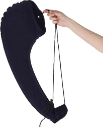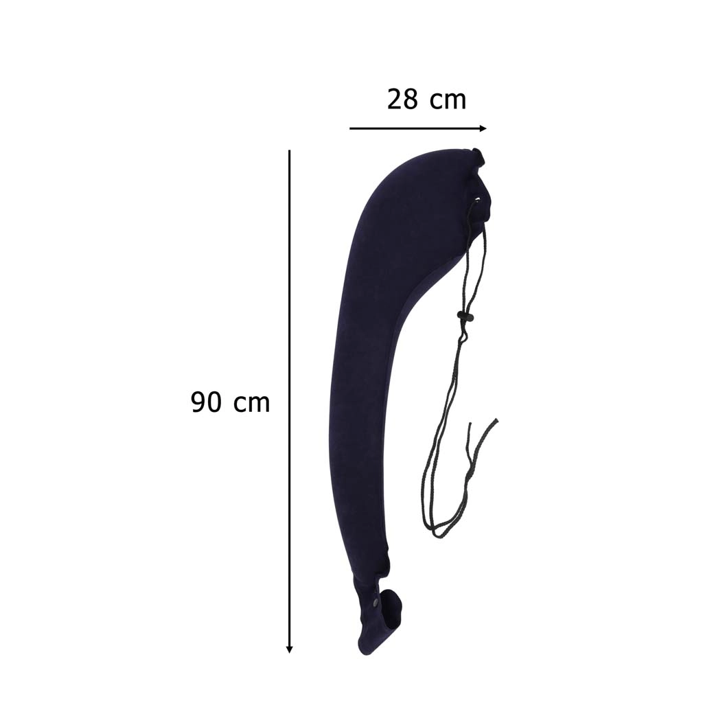 La almohada lateral inflable es ideal para viajes largos en coche, autobús o tren. Está diseñada para dormir sentado: apoya la cabeza en la parte más ancha y el otro extremo lo fijas al respaldo mediante clips de cierre. Estabiliza la postura del cuerpo y ayuda a reducir la tensión en la zona cervical.
