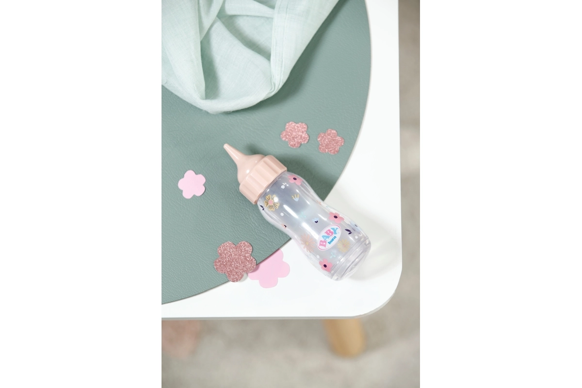 Ligero y con forma ergonómica, se adapta perfectamente a la mano infantil y, gracias al tapón de rosca seguro, es ideal para el juego diario. Su delicado diseño pastel con el logotipo de BABY born combina con otros accesorios y fomenta el juego imaginativo de roles.
