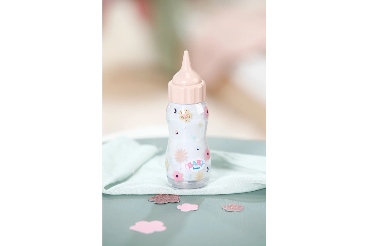 El biberón mágico BABY born interactivo con efecto de líquido que desaparece convierte cada “alimentación” de la muñeca en una experiencia divertida y realista. Durante la “toma” el contenido desaparece y, al poner el biberón de nuevo en posición vertical, se vuelve a llenar. Un complemento ideal para jugar a cuidar, imitar situaciones cotidianas y desarrollar la imaginación. Apto para niños a partir de 1 año.