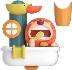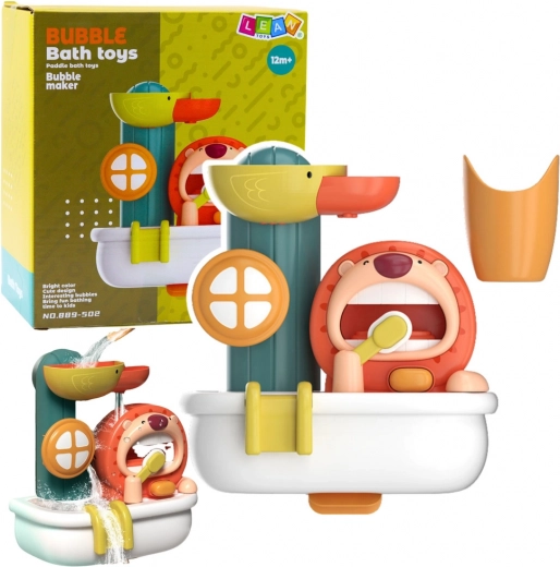 Un juguete de baño interactivo en forma de colorido generador de espuma convierte la higiene diaria en diversión. El león sonriente “se cepilla los dientes” y libera abundante espuma, mientras que el patito activa una cascada acuática con ruedas giratorias. Gracias a las ventosas se fija a la bañera y a los azulejos, motivando a los niños a la autonomía y a hábitos saludables.