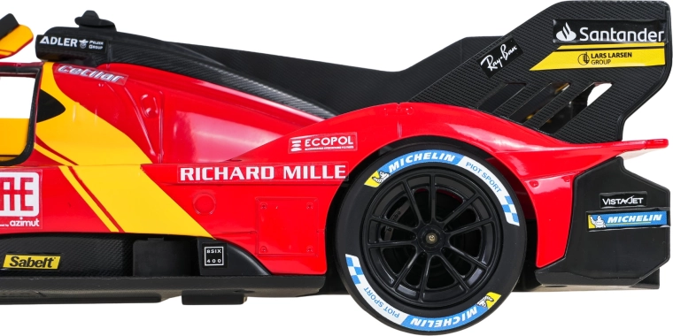 El modelo a escala 1:14, con una longitud de aprox. 36 cm, destaca por su acabado realista – desde los alerones aerodinámicos hasta la cabina detallada. Gracias a las puertas abatibles y a las ruedas de goma suaves, es excelente para una conducción dinámica y como pieza de colección.