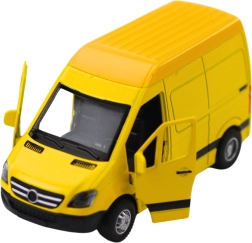 Realista furgoneta amarilla a escala 1:32 que combina piezas metálicas y plástico de alta calidad para mayor durabilidad y un aspecto atractivo. Ofrece motor de fricción pull back, puertas abatibles y efectos de luz y sonido, por lo que es ideal tanto para jugar como para coleccionistas.