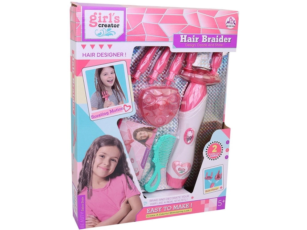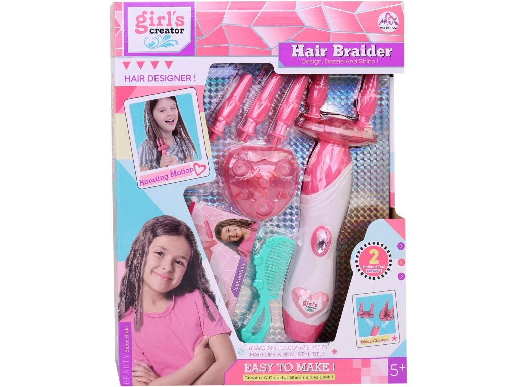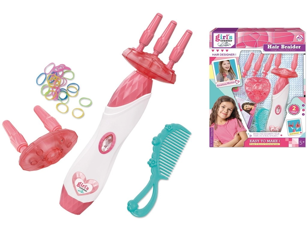 Crea en minutos trenzas con estilo con este sencillo juego para trenzar el cabello. La trenzadora eléctrica ofrece 2 modos de trenzado (con dos o tres mechones), un manejo fácil mediante el “botón diamante” y es ideal para niñas a partir de 5 años. En el paquete encontrarás trenzadora, peine y gomitas, perfectos para peinados en casa y diversión con amigas.
