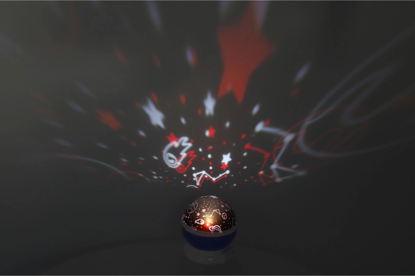 Aporta una atmósfera mágica a la habitación infantil con un proyector con estilo que proyecta un cielo estrellado. Ideal para un descanso tranquilo, relajación nocturna y calmar antes de dormir. Ofrece alimentación por pilas y por USB, manejo sencillo y un diseño seguro de plástico.