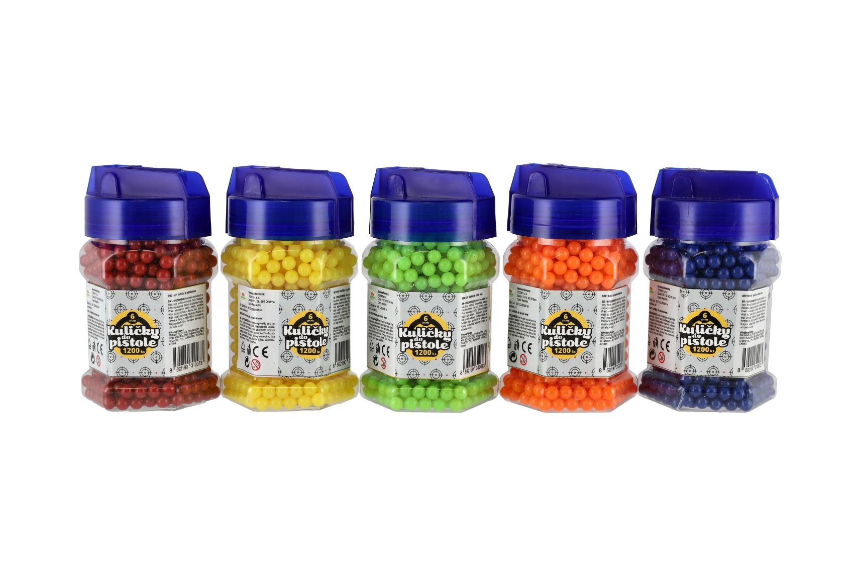 Bolas de plástico de repuesto de 6 mm de diámetro para pistolas infantiles, ideales para tiro recreativo a diana. El paquete incluye 1200 bolas ligeras en un práctico frasco con tapón para un fácil dosificado y almacenamiento. Las bolas vienen en mezcla de colores y son adecuadas para pistolas de juguete comunes.