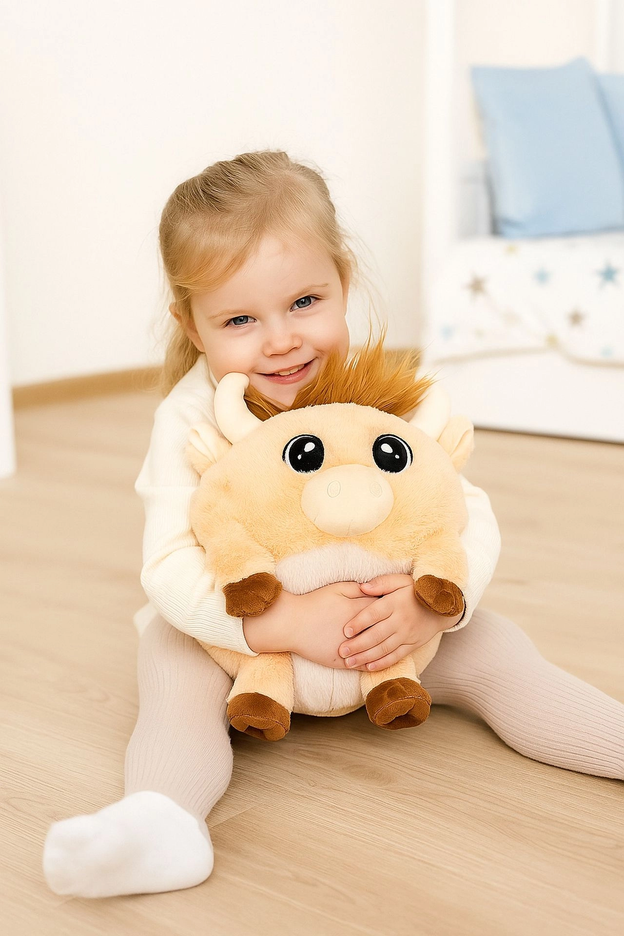 El cojín térmico Cozy Noxxiez con diseño de vaca de las Highlands está hecho de poliéster 100% extra suave, por lo que invita a achucharlo y relajarse. Gracias a sus dos aberturas laterales funciona como un práctico manguito: introduce las manos y en un momento estarán agradablemente calientes. A los niños también les encantará poder guardar pequeños tesoros dentro.
