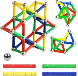 Este set educativo magnético fomenta la creatividad, el pensamiento lógico y espacial y la motricidad fina. Gracias a la variedad de piezas, los niños crean fácilmente modelos estables, desde formas básicas hasta complejas estructuras 3D. El embalaje práctico facilita el transporte y el almacenamiento.