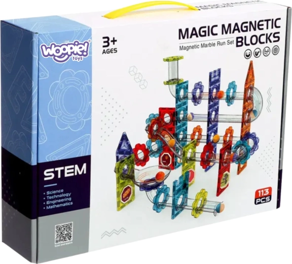 Descubre el mundo de la creación y la física con el set creativo WOOPIE: pista de canicas magnética con 113 piezas. Los tubos transparentes, las baldosas de colores y los imanes potentes permiten construir circuitos estables de varios niveles, en los que los niños aprenden de forma práctica la gravedad y el movimiento. Ideal para desarrollar el pensamiento lógico, la imaginación espacial y la motricidad fina: horas de diversión con sentido para niños a partir de 3 años.