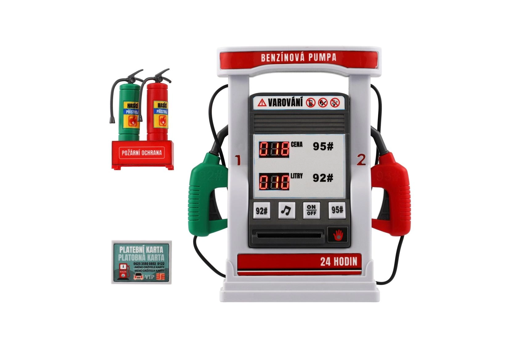 El conjunto incluye dos mangueras de repostaje, tarjeta de pago, equipo contra incendios y otros accesorios que crean un entorno realista de estación de servicio. El embalaje compacto es ideal tanto para jugar en casa como para llevar de viaje.