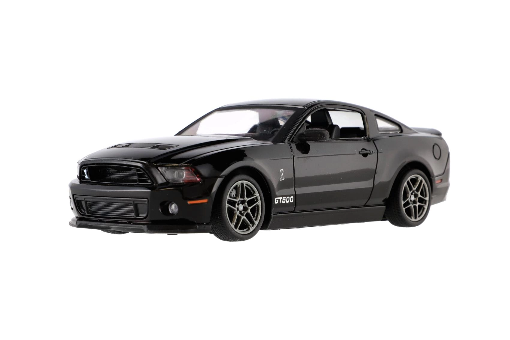Modelo detallado del FORD SHELBY GT500 a escala 1:24 con carrocería, ruedas e interior muy cuidados que encantará a coleccionistas y pequeños pilotos.