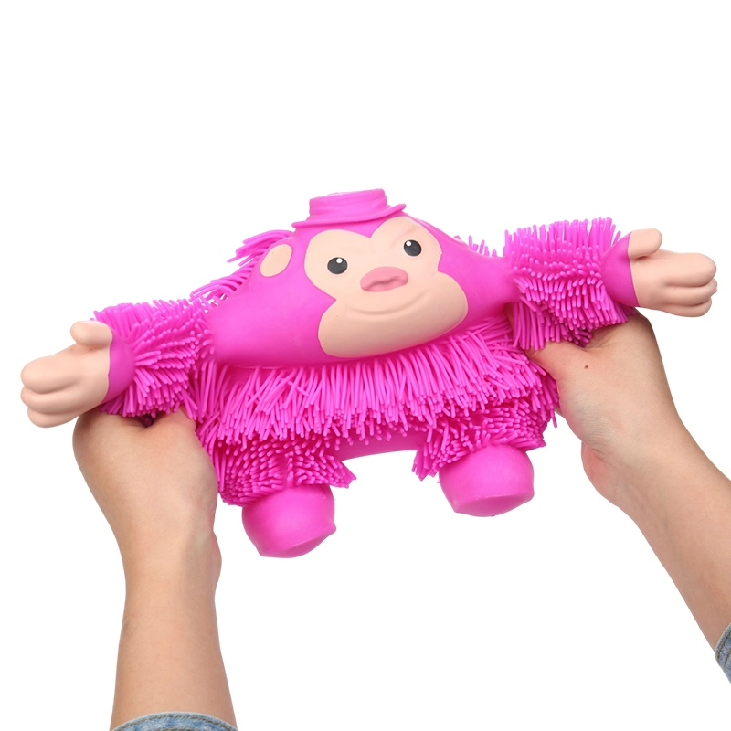 Date un capricho con esta simpática gorila squishy que entretiene y relaja. Su cuerpo suave y elástico con flecos densos invita a apretar, amasar y estirar sin fin. El compañero ideal para momentos de descanso, para la escuela, la oficina y los viajes.
