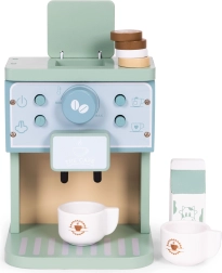 Convierte la habitación infantil en una acogedora cafetería. La cafetera de madera ECOTOYS imita fielmente un aparato real: cuenta con doble salida, perillas de control y depósito para cápsulas. Gracias a su cuidada elaboración y a los bordes redondeados, el juego es no solo seguro, sino también muy realista.