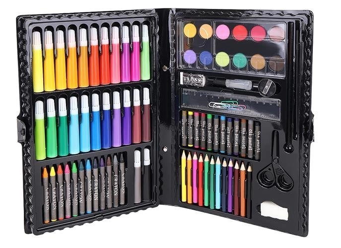 El set incluye un total de 86 piezas, entre ellas lápices de colores, rotuladores, ceras y pasteles al óleo para una creatividad sin límites.