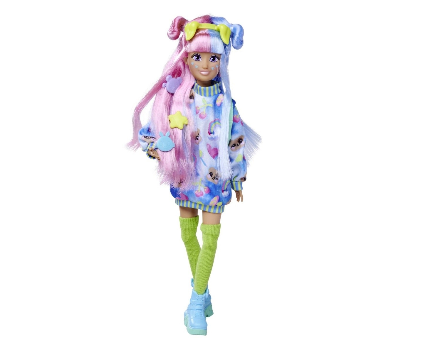 Peina, coloca clips y crea peinados originales. Los mechones largos y de colores son perfectos para el juego creativo.