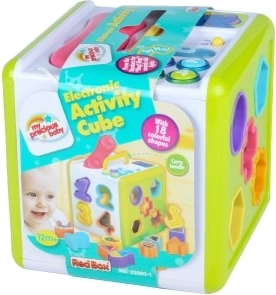 El cubo está equipado con efectos de luz y sonido, que potencian la experiencia de juego y ayudan al desarrollo sensorial del niño. Además, gracias a su asa práctica, es fácil de transportar.