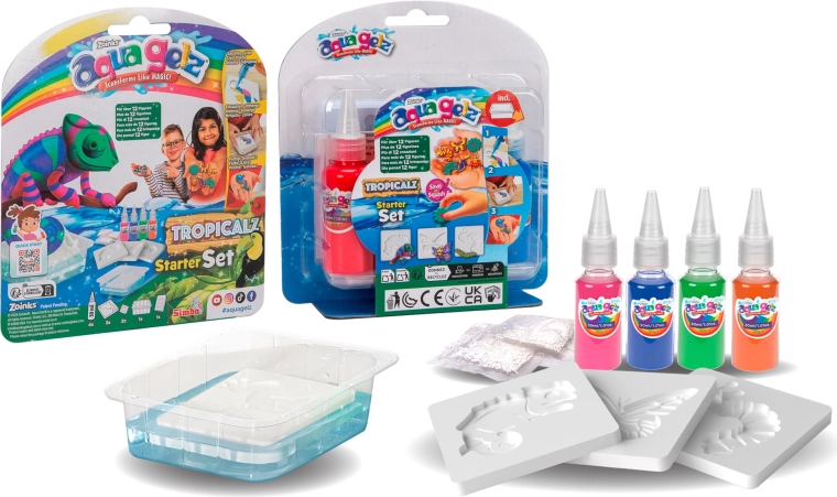El set de inicio Tropicalz es un regalo ideal para pequeños creadores. Ofrece un proceso sencillo, colores vivos y un recipiente reutilizable para la solución acuosa. La creación en casa es segura si se siguen las instrucciones y se recomienda supervisión de los padres.