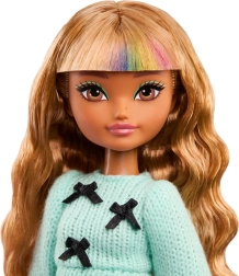 Zia tiene hermosas ondas castañas y un flequillo con mechas de color: ideal para peinar, “rizar” de forma imaginaria y crear nuevos estilos.