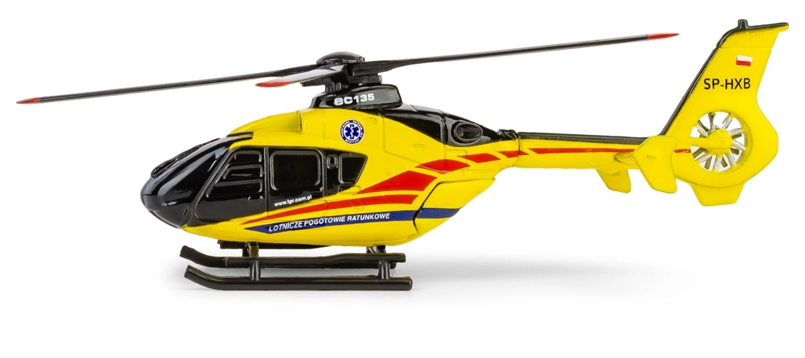 Este modelo con licencia representa fielmente el helicóptero AIRBUS EC135 utilizado por el servicio de rescate aéreo. La impresión precisa y los marcajes auténticos corresponden a la librea real, por lo que destaca en cualquier colección o escritorio.