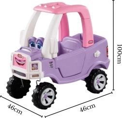 El icónico Cozy Coupe Truck en rosa y morado combina una construcción estable con detalles inteligentes para el juego diario. El niño puede moverse con sus propios pies en modo foot‑to‑floor, o puedes guiarlo cómodamente gracias al práctico asa en el techo. El suelo extraíble aumenta la seguridad de los más pequeños y ofrece más autonomía a los mayores.
