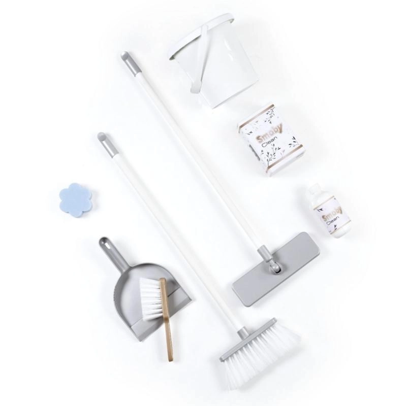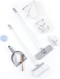 Incluye recogedor y cepillo de mano, fregona, cepillo, cubo y réplicas de productos de limpieza: todo para el juego de roles y el desarrollo de la motricidad fina.