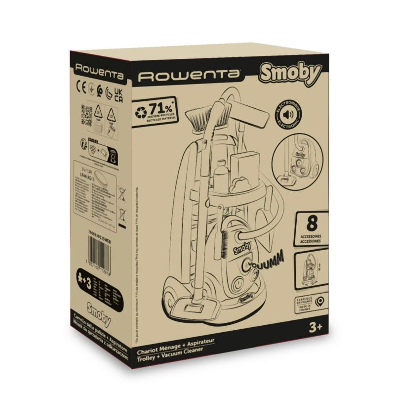 Descubre el divertido carrito de limpieza infantil con aspiradora ROWENTA, que aporta un juego de limpieza realista. El sonido auténtico de la aspiradora, los abundantes accesorios y la estructura ligera y compacta son ideales para niños a partir de 3 años. El set fomenta el desarrollo de la motricidad fina, la autonomía y la responsabilidad, y está fabricado con al menos un 71 % de material reciclado.