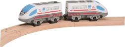 Moderno tren de alta velocidad a pilas para circuitos de vías de madera que encantará a cada pequeño maquinista. Conjunto azul y blanco con detalles realistas, acoplamiento magnético y conducción autónoma que ofrece mucha acción y desarrolla la motricidad fina, la coordinación y la imaginación. Compatible con la mayoría de vías de madera estándar.