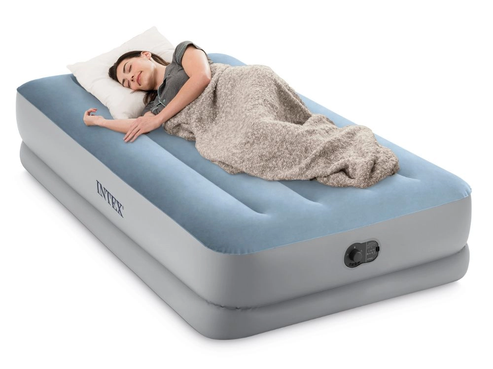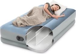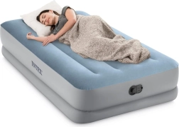 ¿Busca una solución cómoda para invitados, viajes o la casa de campo? El colchón inflable Intex combina confort, estabilidad y movilidad. La superficie aterciopelada es agradable al tacto y evita que la sábana se deslice, mientras que las cámaras reforzadas Fiber-Tech y el armazón Dura-Beam aportan firmeza al lecho sin molestas oscilaciones.