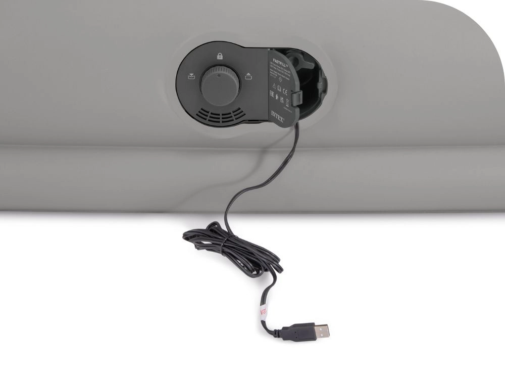 La bomba USB integrada de 5V/2A infla el colchón en aproximadamente 240 segundos. Se alimenta fácilmente desde una powerbank, cargador de teléfono, puerto USB o cargador de coche, ideal para el hogar y para viajar. La certificación AirLock garantiza estanqueidad y fiabilidad incluso con uso frecuente.
