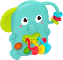 Adorable sonajero sensorial con forma de elefante que encantará a los bebés desde los primeros meses. Gracias a sus texturas variadas, elementos móviles y cordones de colores para tirar, favorece la motricidad fina, la coordinación mano‑ojo y la curiosidad natural del niño. Fabricado en plástico seguro y de alta calidad para el juego diario.