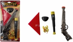 - Equipamiento pirata completo – pistola pirata, catalejo, pañuelo, insignia, parche para el ojo.