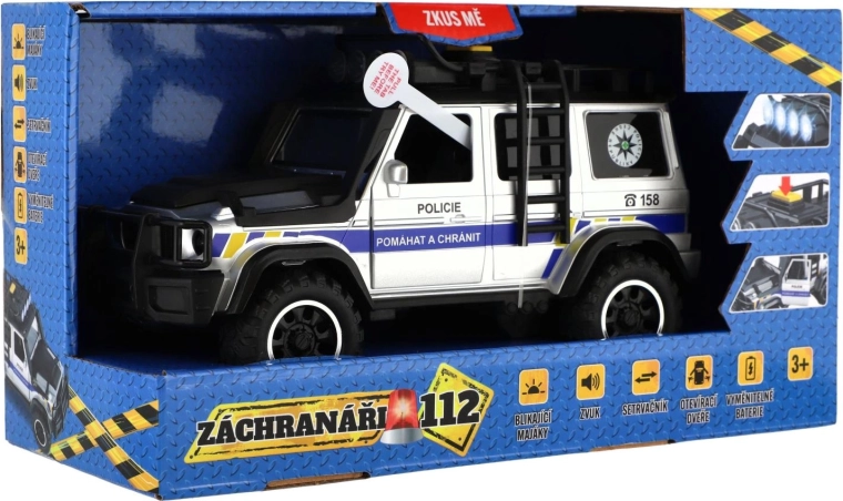 ¡Conviértete en un héroe con el coche todoterreno policial Rescatistas 112! El robusto modelo ofrece efectos de luz y sonido, tracción de inercia para un arranque rápido y puertas abatibles para un juego aún más realista. Ideal para niños que aman la acción y la aventura.